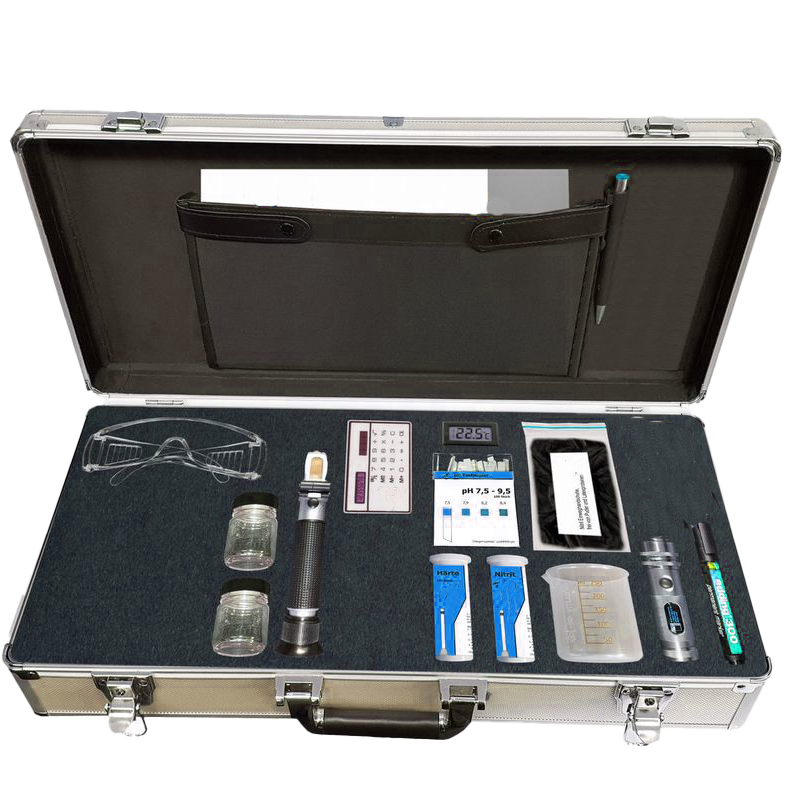 Voll ausgestatteter Servicekoffer für die regelmäßige Überprüfung der Kühlschmierstoffemulsionen gemäß TRGS 611